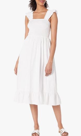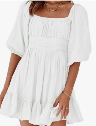 This mini cottagecore nap dress is so pretty with its lantern sleeves. It has a sweet tie back detail, shirred waist, and square neckline that’s really flattering. The white color makes it feel fresh for summer, and the above knee length gives it a playful look.