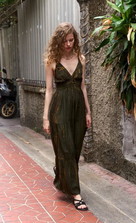 I came across this green tie dye maxi dress that has such a dreamy boho look. It’s a smocked style, so it hugs the top just right and flows beautifully at the bottom. A dress like this feels light and easy to wear, perfect for warm days or just lounging around.