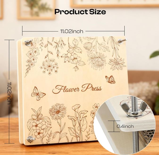 They have handcrafted presses with thoughtful details and sturdy construction, making it easy to press blooms neatly. Each press feels well made and ready to use, so you can create pressed flowers for cards or small gifts.